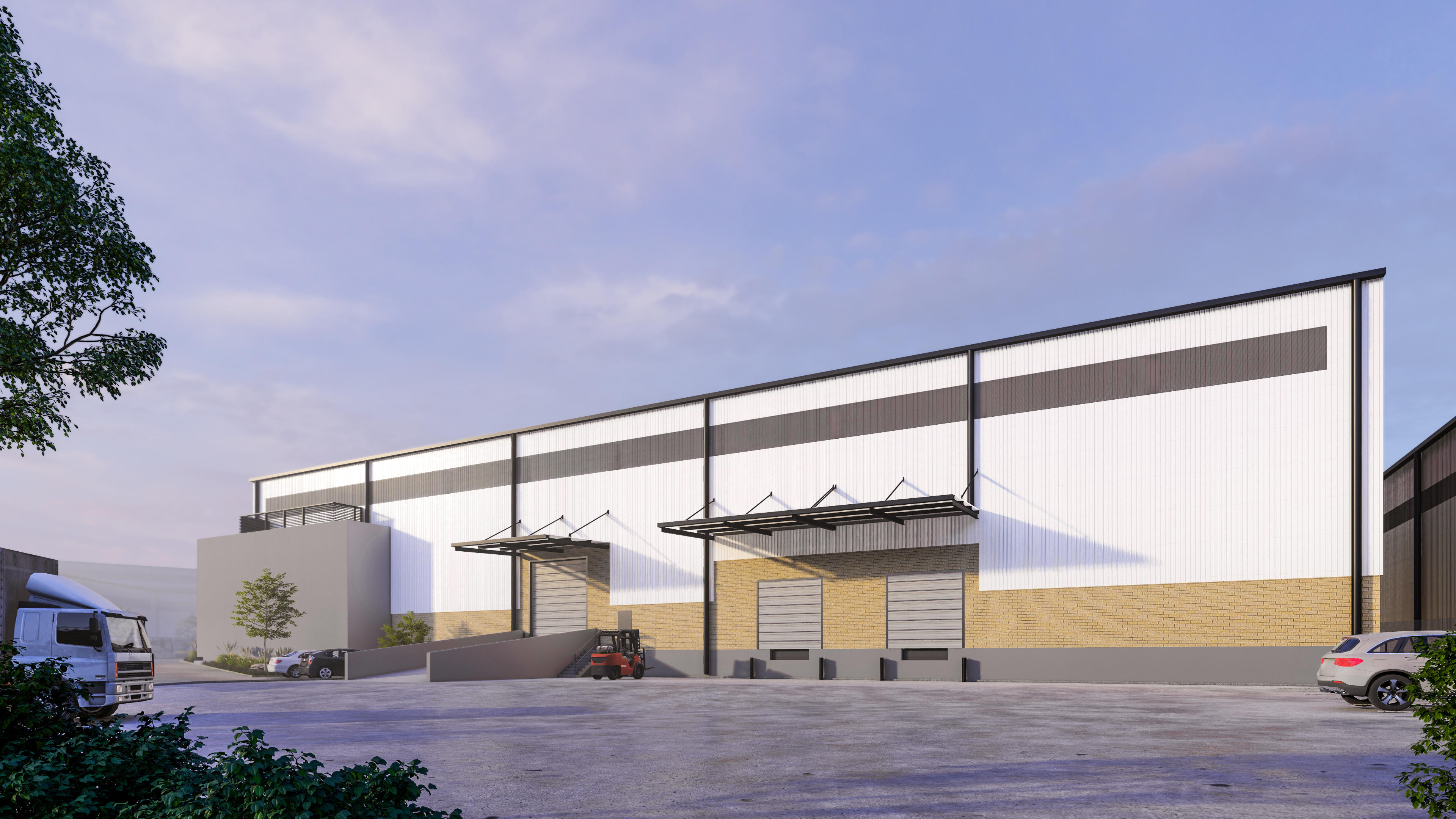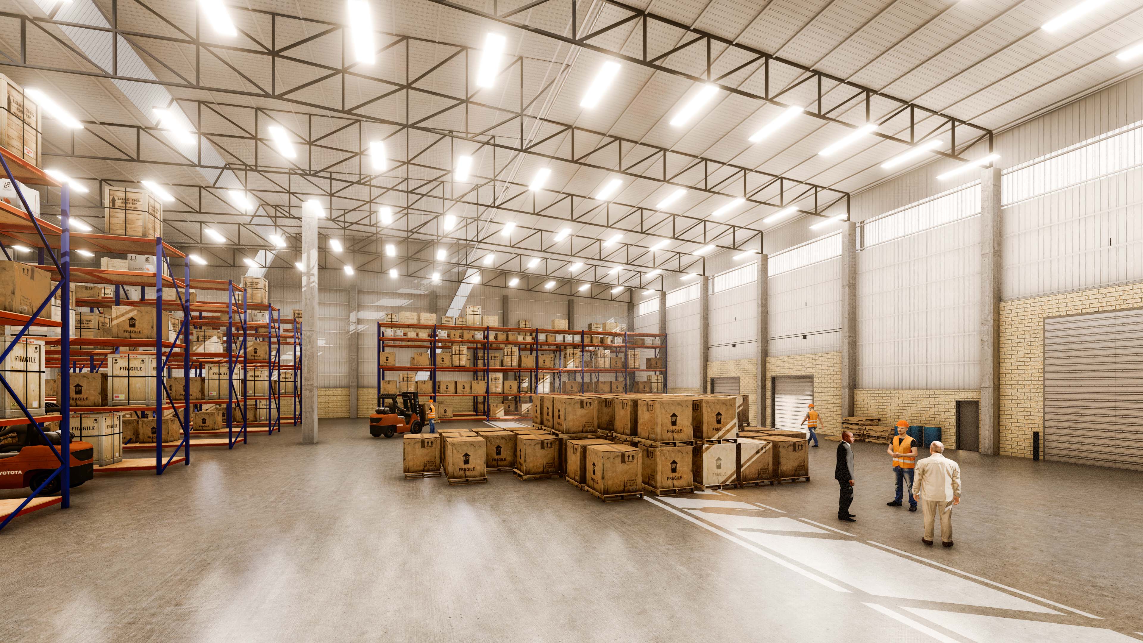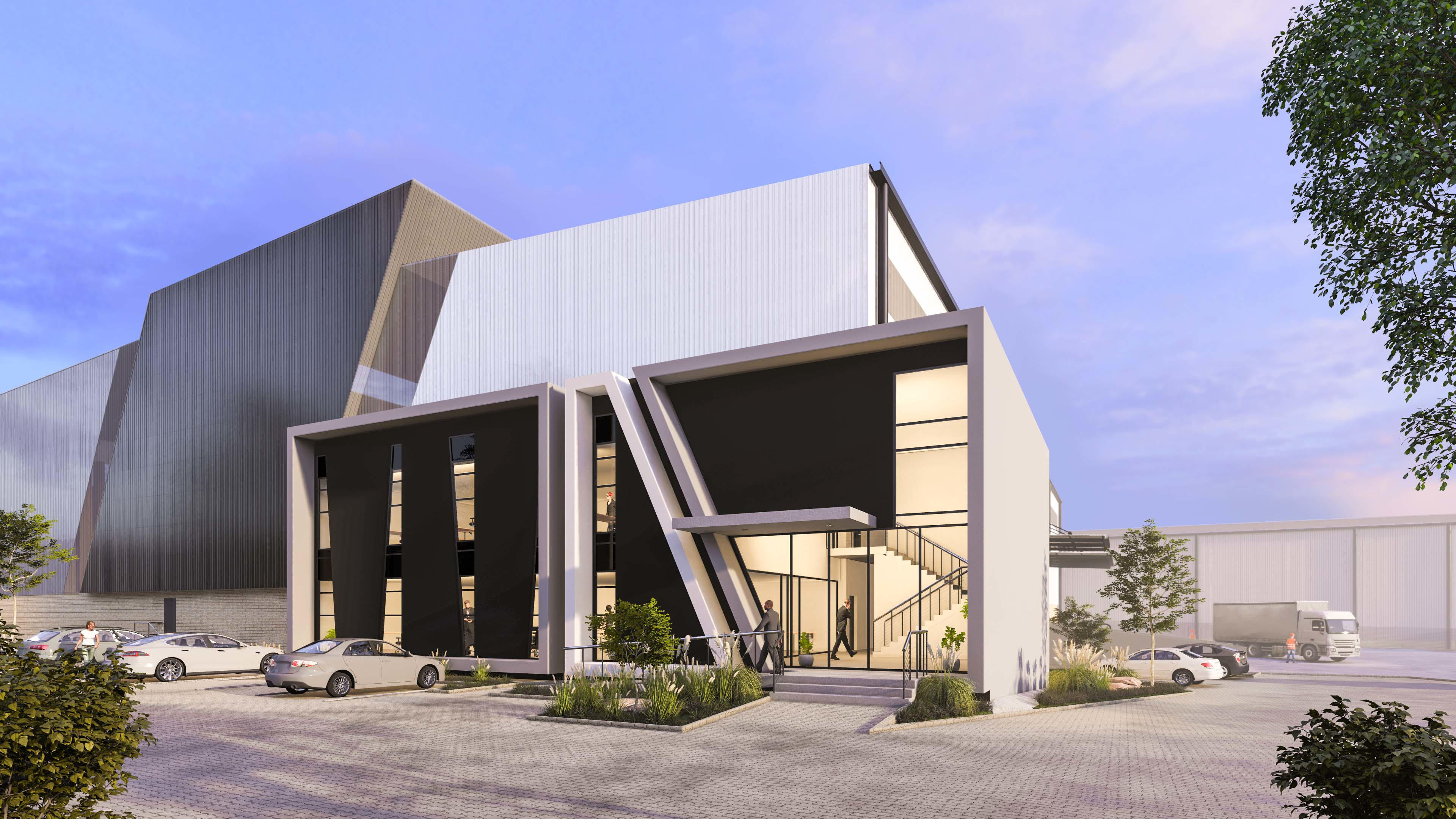 The buildings are optimised for flexibility, with each having its own open-plan office area. Warehouse spaces have a clear spring height of 11 metres. LED high bay lighting is provided to all warehouse spaces, and natural lighting will be enhanced by means of translucent sheeting on certain vertical sections of the facades. The warehouses will be fully sprinkler protected, with sprinkler systems connected to backup pumps and tanks. Power allocations from 147kVA to 212kVA are available.
